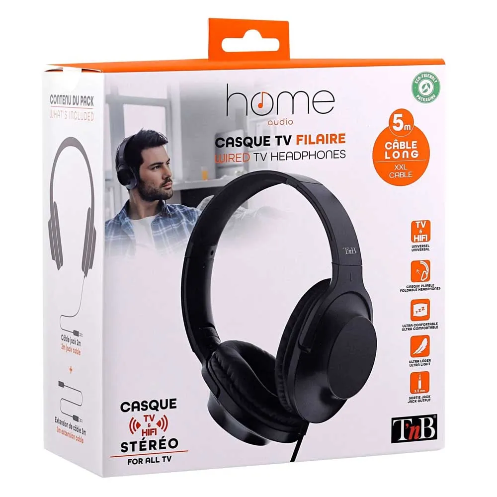 Ce nouveau casque filaire de 2 mètres, ultra confortable, dispose d´une rallonge audio de 3 mètres, idéale pour se déplacer dans la pièce. Équipé d´un arceau réglable, vous pouvez ajuster le casque à votre guise pour un confort optimal. Les coussinets d´oreille bien enveloppants et ultra-doux vous permettent de profiter pleinement de votre film ou de votre musique. Côté pratique, le casque est également pliable, vous pouvez le ranger dans votre meuble TV. Le casque TV CSHOME3 : votre nouveau compagnon indispensable pour vous évader dans vos meilleurs films et séries.