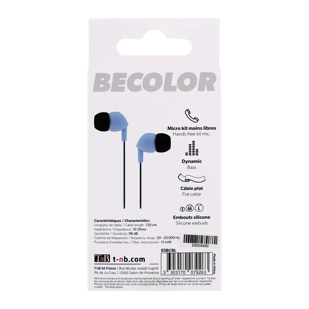 Les nouveaux écouteurs BE COLOR sont la touche musicale fun et colorée qui vous accompagnera partout ! Dotés d´un microphone universel intégré, ces écouteurs sont compatibles avec tous les lecteurs de musique (smartphones, MP3, MP4 ou iPod) et vous permettent de prendre un appel sans même avoir à manipuler votre smartphone. Équipés d´aimants en néodyme de haute qualité, vous profiterez d´une acoustique fidèle aux enregistrements originaux de votre playlist, avec des basses profondes et des aigus cristallins. Les écouteurs BE COLOR de T´nB, vos nouveaux accessoires indispensables.