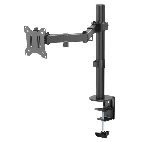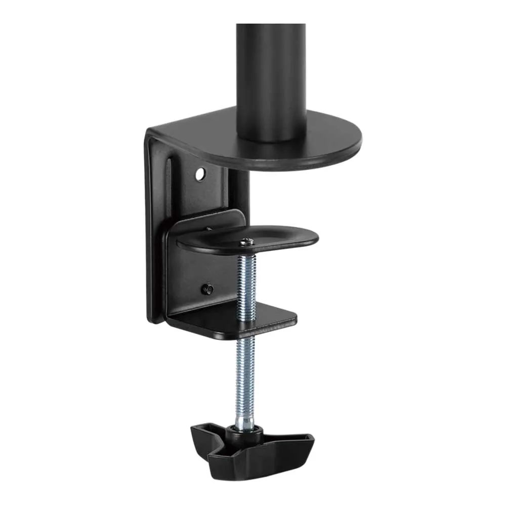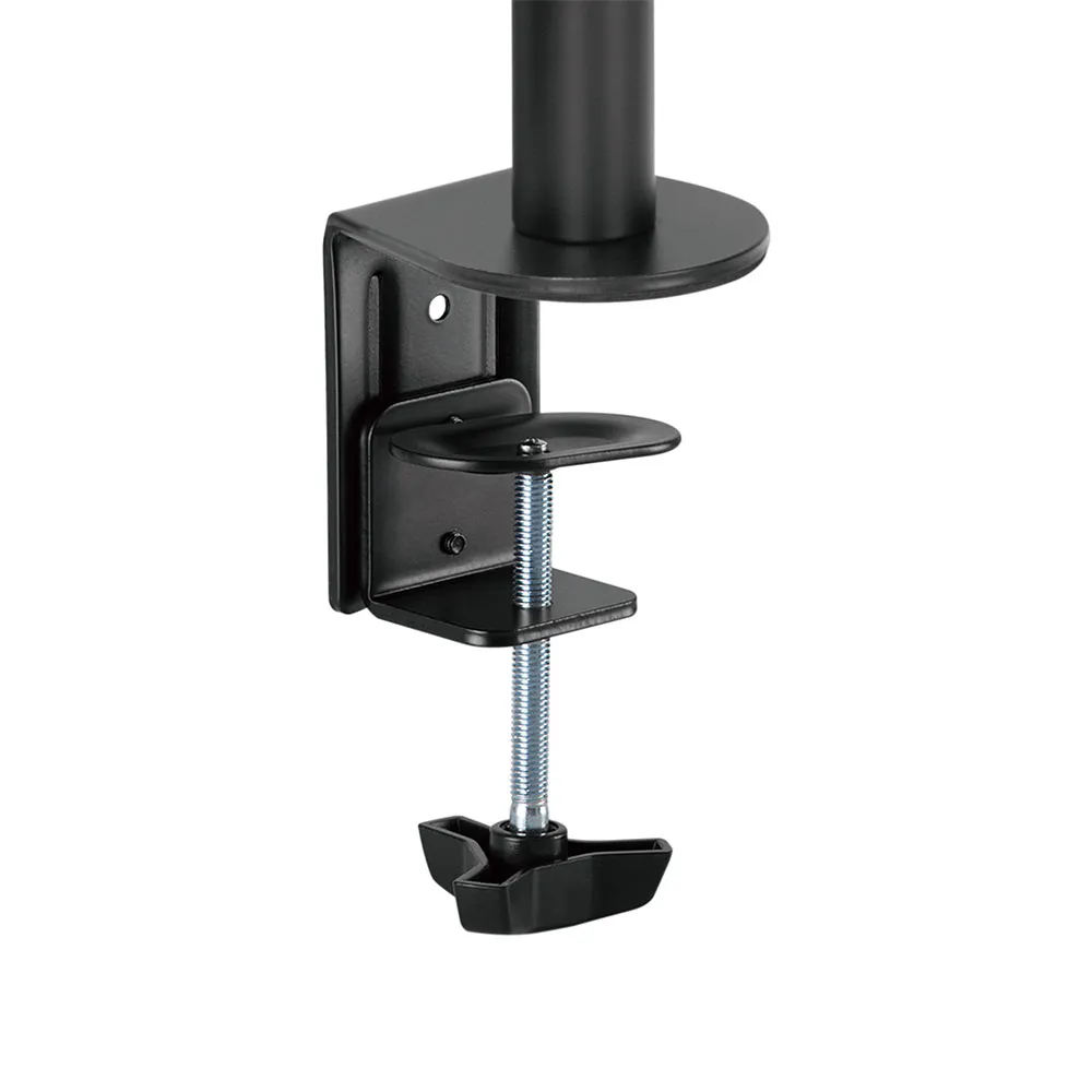 Mât de support d´écran à articulation simple et réglage en hauteur. Sa finition en acier assure une résistance et une durabilité optimales. L´articulation du bras et de la tête, combinée à sa rotation à 360° autour du mât, vous permet de trouver la position idéale pour votre écran. Les clips guident les câbles vers l´écran et vous permettent d´organiser et de désencombrer votre bureau. Installation ultra simple grâce à sa vis de serrage adaptée à tous les bureaux de 10 à 85 mm d´épaisseur. Supporte les écrans jusqu´à 8 kg. Angle de pliage du bras : +/-90°. Angle d´inclinaison de la tête : +/-45°.