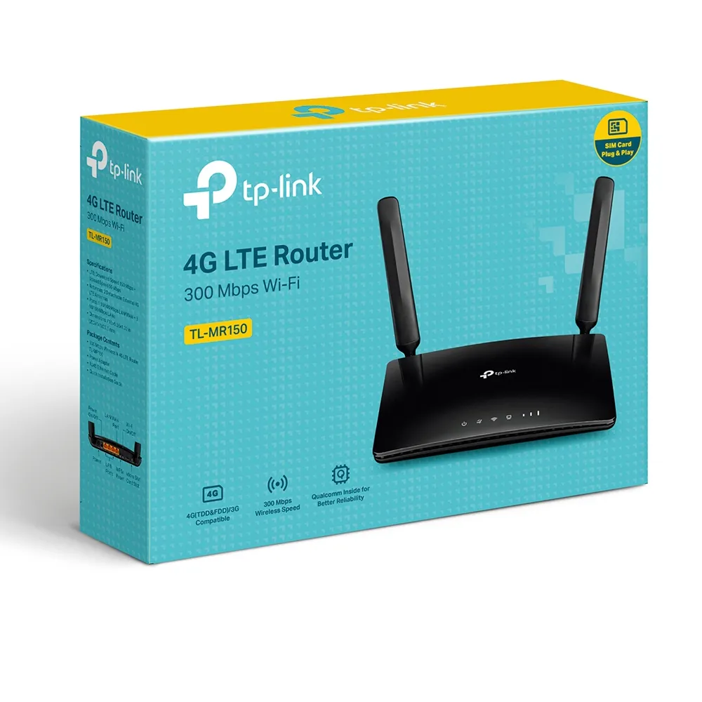 Profitez d´un accès internet flexible avec le routeur 4G LTE TP-LINK TL-MR150. Insérez simplement votre carte SIM pour partager un puissant réseau 4G LTE avec plusieurs appareils. Profitez de vitesses Wi-Fi stables allant jusqu´à 300 Mbps, parfaites pour le streaming HD, les téléchargements et les jeux en ligne. Équipé de deux antennes externes pour une couverture supérieure et d´un port WAN/LAN pour une connexion filaire optionnelle, ce routeur offre une polyvalence inégalée. Des fonctionnalités de sécurité avancées et une gestion facile garantissent une expérience réseau sécurisée et sans tracas pour la maison ou les emplacements distants. Prise UE