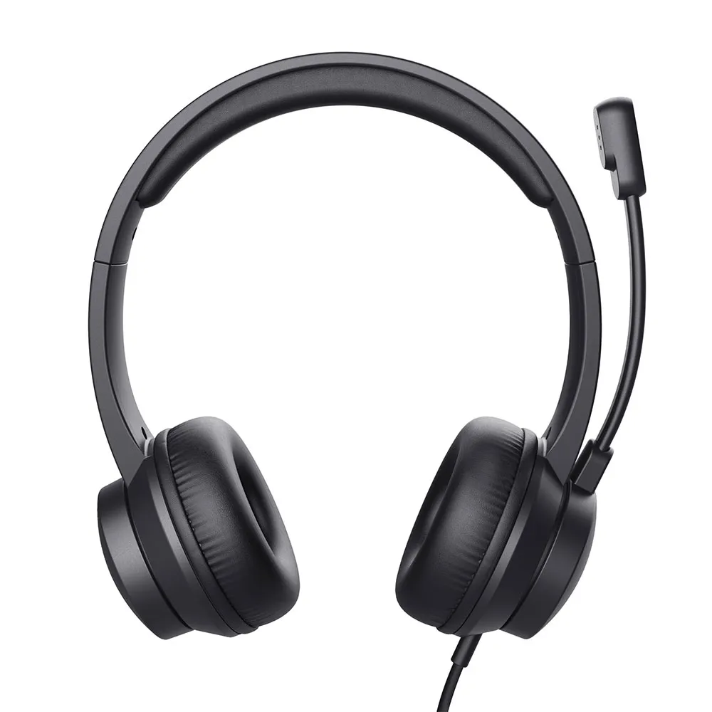 Casque PC USB léger supra-auriculaire avec coussinets doux et bandeau réglable.