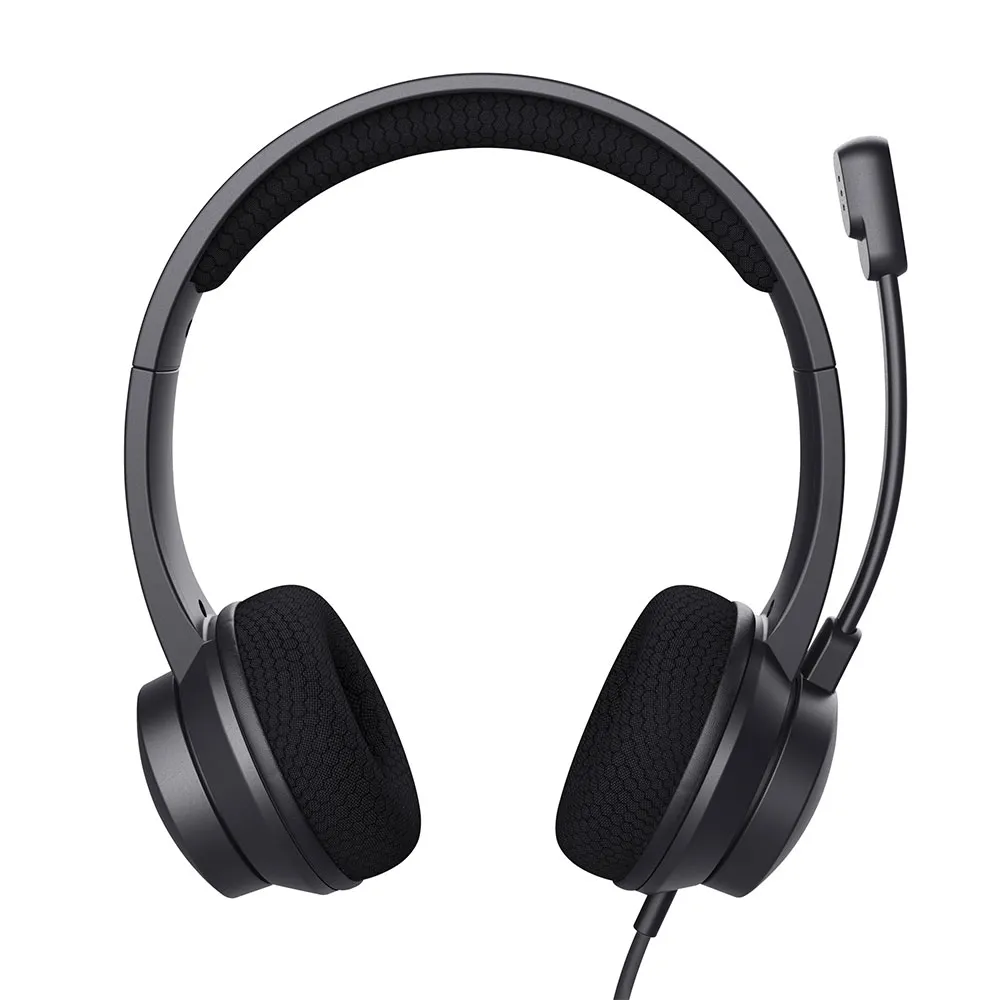 Casque PC USB léger supra-auriculaire avec microphone antibruit et serre-tête réglable.