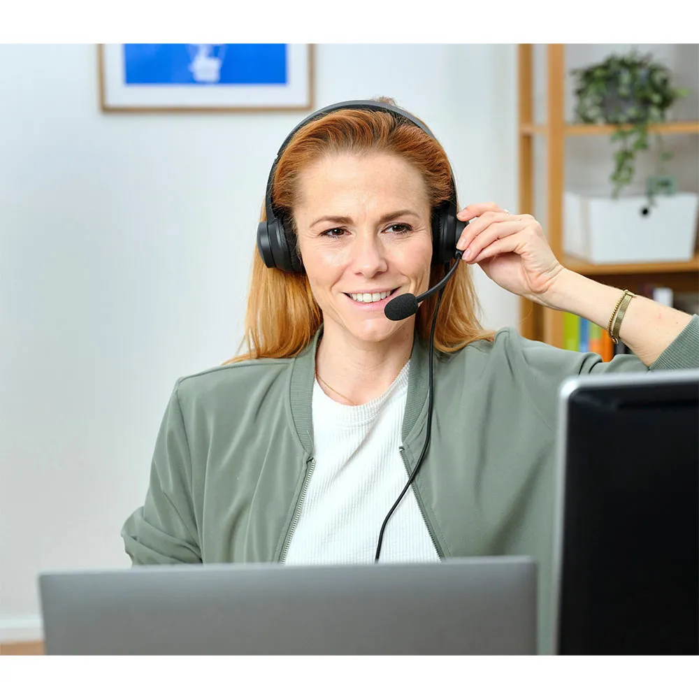 - Branchez simplement ce casque via la connexion USB et USB-C pratique, compatible avec n´importe quel ordinateur portable ou PC, et vous serez prêt à l´utiliser en un rien de temps.