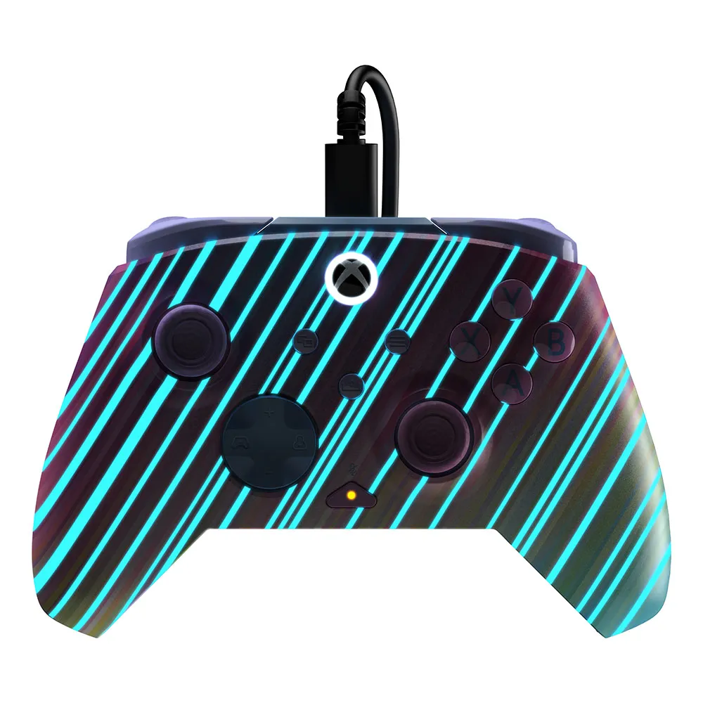 Démarquez-vous dans n´importe quelle configuration avec le design phosphorescent unique de la manette de jeu filaire avancée Rematch.