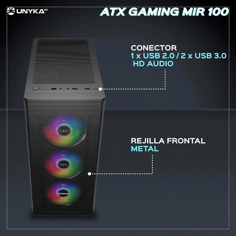 Avec ses lignes épurées, son éclairage ARGB personnalisable (comprend 3 ventilateurs ARGB à l´avant et un à l´arrière) et ses détails de conception qui se démarquent, ce châssis MIR 100 est un bijou dans la gamme d´entrée de gamme avec un équilibre parfait entre style et fonctionnalité.