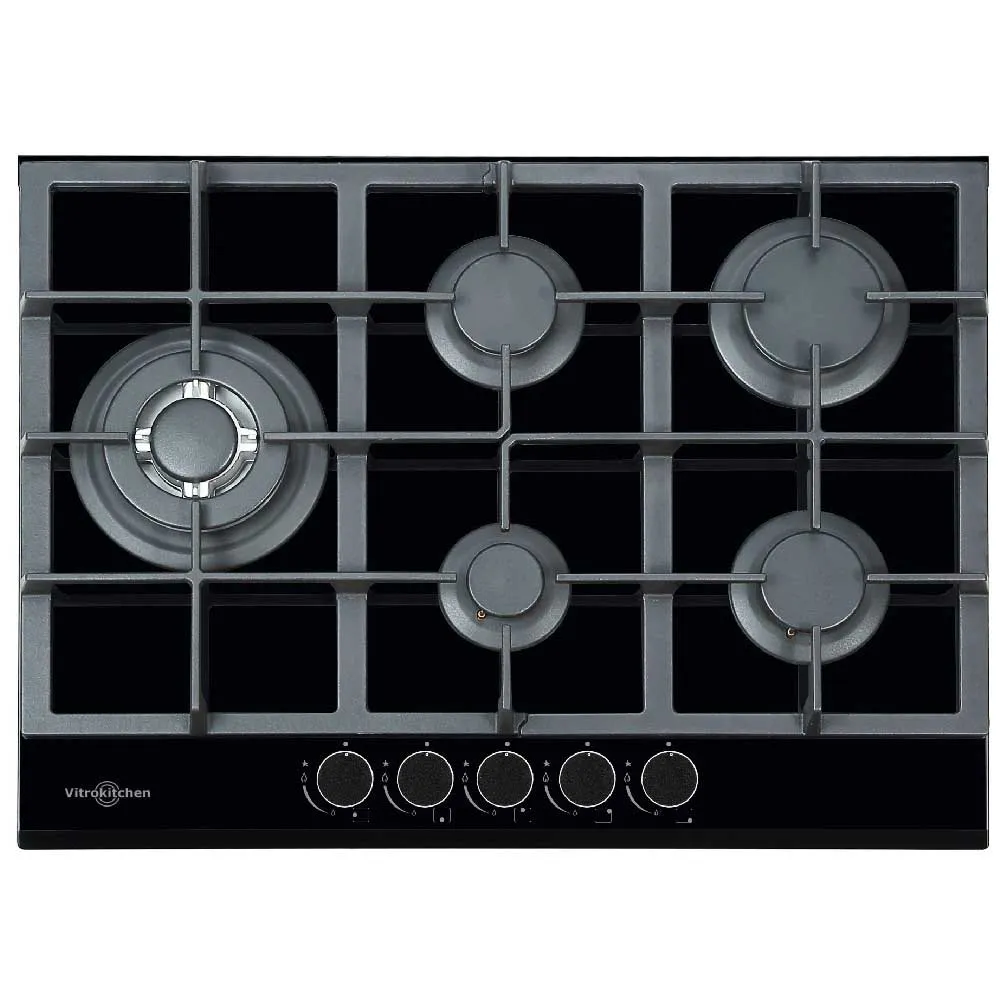 Description Vitrokitchen Table de cuisson à gaz CG73NB 70 cm 5 feux