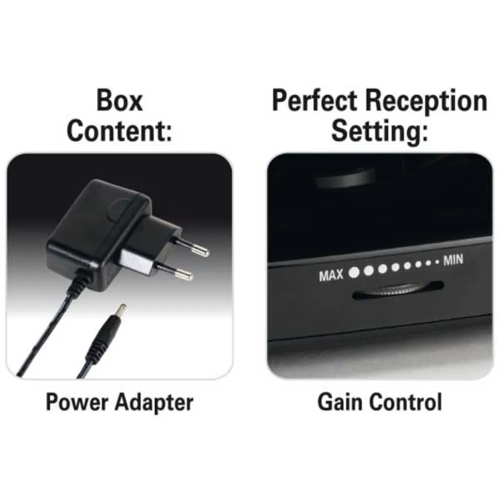 Cette antenne puissante présente une conception sophistiquée conçue pour une réception du signal maximale. Ses capacités longue portée vous permettent de capter les émissions à des distances plus éloignées, élargissant ainsi votre sélection de chaînes et vous donnant accès à une plus grande variété de programmes.