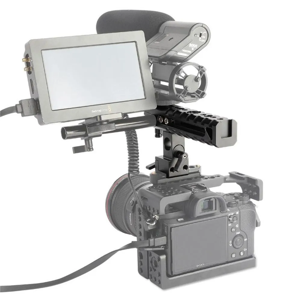 Το SmallRig QR Cheese Handle 1720 είναι μια επάνω λαβή γρήγορης απελευθέρωσης που προσαρμόζεται και αποσπάται με μια βίδα με φτερούρα. Σύρετε το πάνω στη ράγα ασφαλείας και σφίξτε το φτερού, μπορείτε να το κλειδώσετε στη θέση του. Ράγα για να διατηρήσετε την ισορροπία της κάμεράς σας, μπορείτε επίσης να σύρετε προς τα εμπρός και προς τα πίσω για να βρείτε το σημείο ισορροπίας της εξέδρας σας. Αυτή η λαβή έχει πολλαπλές λειτουργίες. Το πλευρικό άνοιγμα 15 mm επιτρέπει την τοποθέτηση μιας ράβδου 15 mm, ώστε να μπορείτε να προσαρμόσετε την εστίαση παρακολούθησης κ.λπ. Ο σφιγκτήρας ράβδου 15 mm επιτρέπει τη στερέωση βάσης EVF ή βάσης κραδασμού μικροφώνου κ.λπ. Μια ενσωματωμένη βάση παπουτσιού στο επάνω μέρος για τοποθέτηση σε φώτα κάμερας, βάσεις στήριξης μικροφώνου και πολλά άλλα. Μια άλλη ενσωματωμένη βάση παπουτσιού στο τέλος της λαβής για τοποθέτηση EVF βάση, κ.λπ. Η λαβή συνοδεύεται από το σχέδιο οπών για τις περόνες στήριξης αξεσουάρ ARRI. 1/4´´ 20 και 3/8´´ 16 οπές στη λαβή για την τοποθέτηση πρόσθετων εξαρτημάτων. Εν τω μεταξύ, το εξαιρετικά αυλακωτό φινίρισμα με μια σειρά από σημεία στήριξης σας προσφέρει άνετο κράτημα. Η λαβή είναι ιδανική για λήψη σε χαμηλή λειτουργία και εύκολη μεταφορά της φωτογραφικής μηχανής σας.