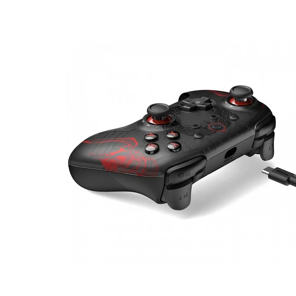 Questo controller premium vanta un´estetica unica ispirata al ricco patrimonio e alle immagini accattivanti del gioco. Il design nero elegante, accentuato da dettagli sottili, evoca lo spirito del leggendario Re Scimmia. Senti la leggenda prendere vita tra le tue mani con il suo design ergonomico e i controlli reattivi, garantendo sessioni di gioco estese e confortevoli anche durante le battaglie più intense.