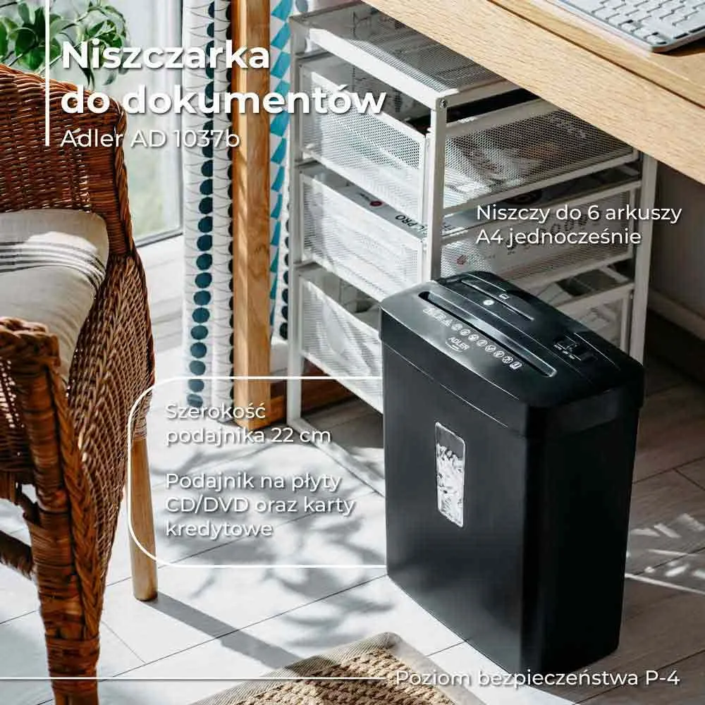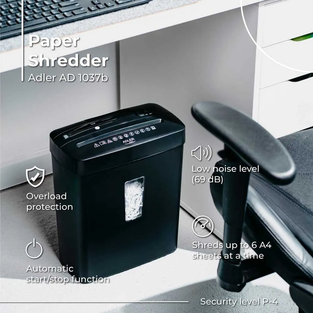 Adler AD 1037 è un distruggidocumenti efficiente e compatto che offre un alto livello di sicurezza e facilità d´uso.