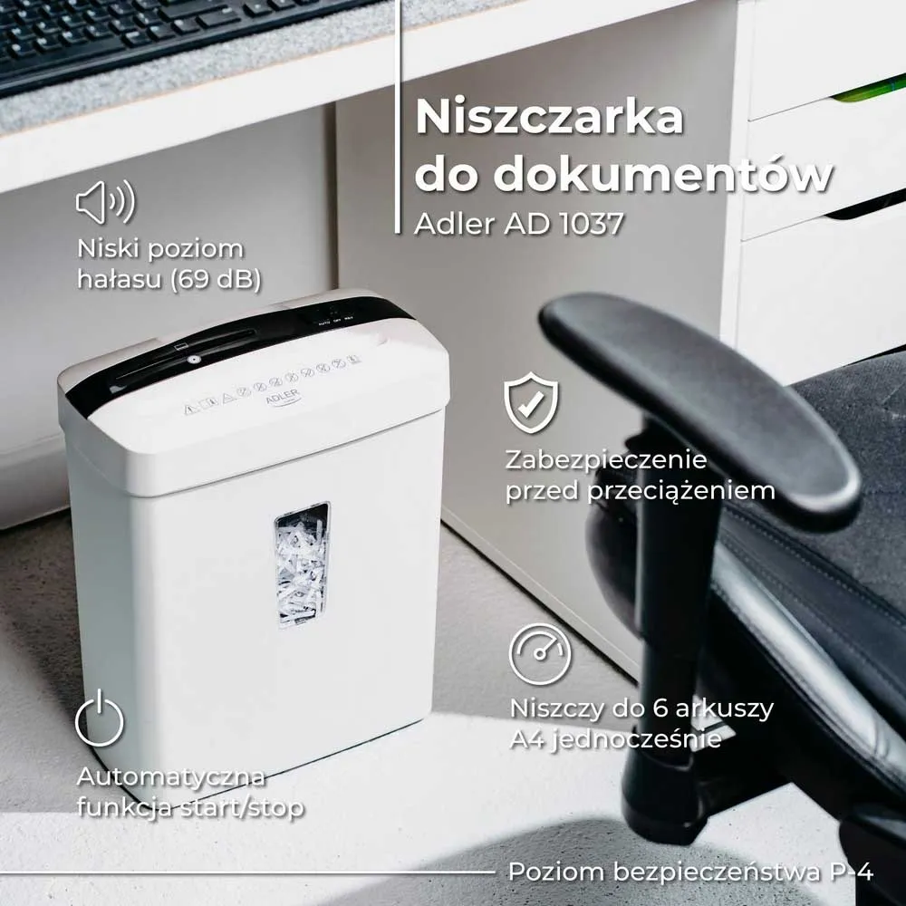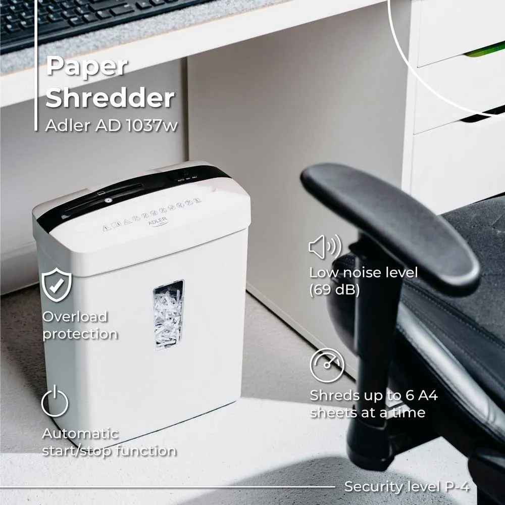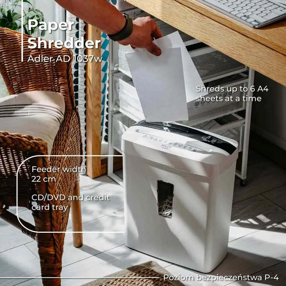 Adler AD 1037 è un distruggidocumenti efficiente e compatto che offre un alto livello di sicurezza e facilità d´uso.