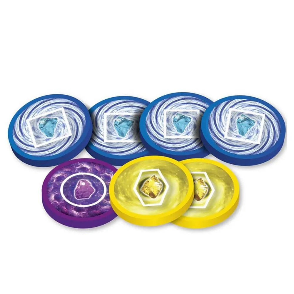 39 segnalini Pietra dell'Infinito, 90 carte, 5 segnalini Scudo, 4 pezzi di localizzazione, 1 pezzo del Guanto dell'Infinito, 1 pezzo dei Vendicatori, assembla! E 1 libro delle regole.