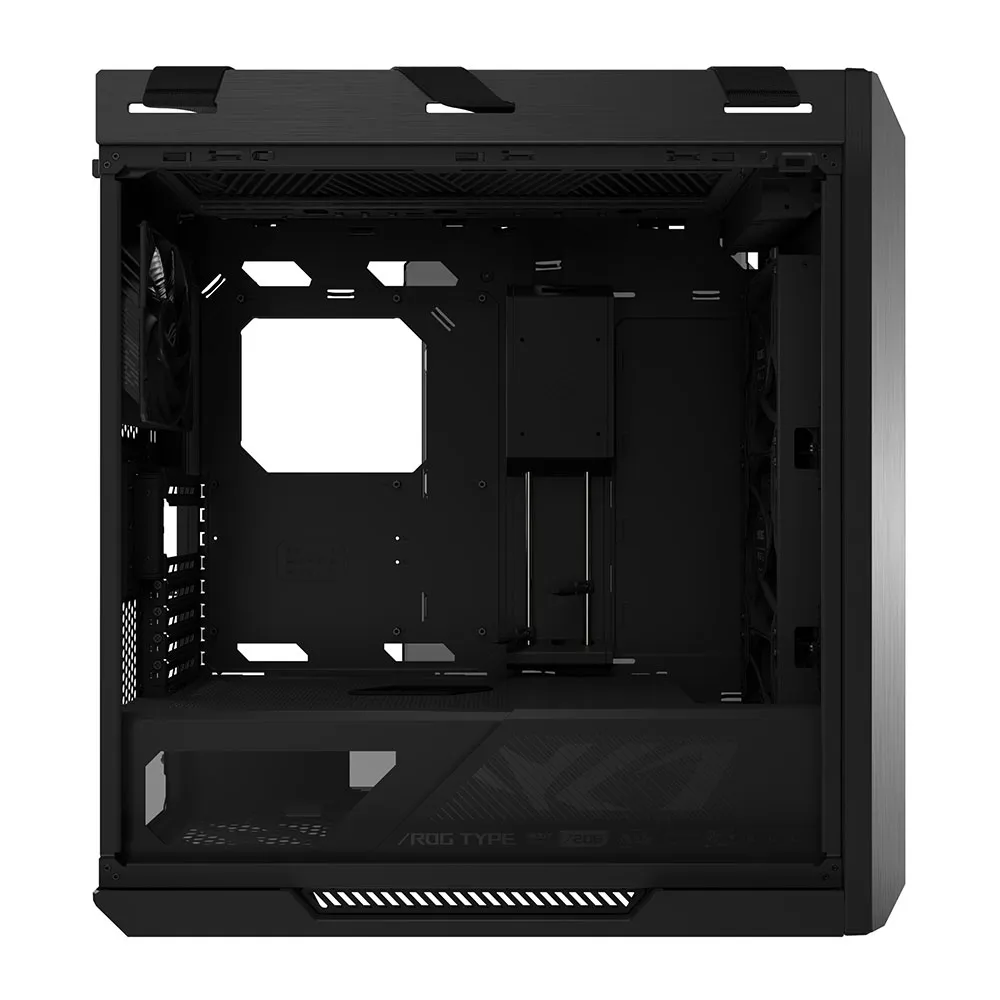 Il pannello frontale, le cinghie in velcro e la gabbia per unità presentano tutti il logo ROG distintivo, comunicando lusso ed eleganza futuristici.