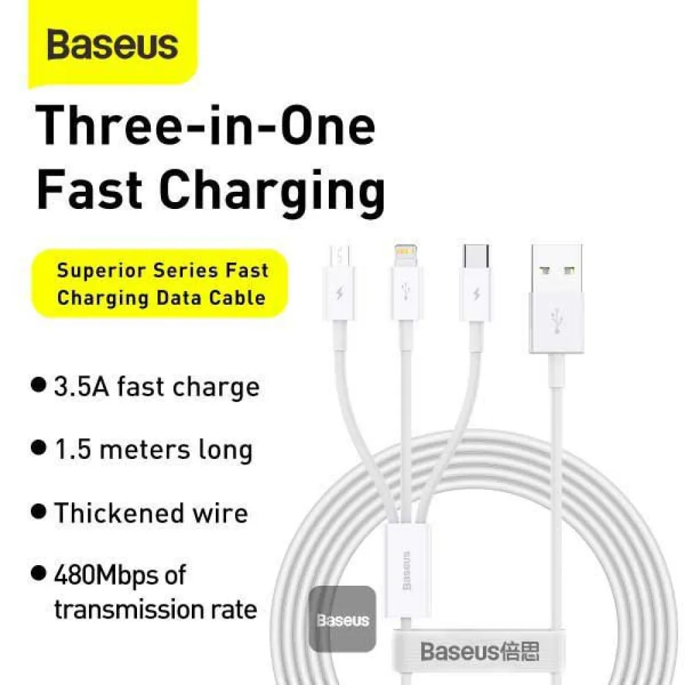 I cavi USB A a USB-C, micro USB e lightning bianchi della serie BASEUS Superior sono cavi di alta qualità e versatili progettati per soddisfare tutte le tue esigenze di ricarica e sincronizzazione. Questi cavi sono compatibili con un´ampia gamma di dispositivi, inclusi smartphone, tablet, laptop e altro ancora.