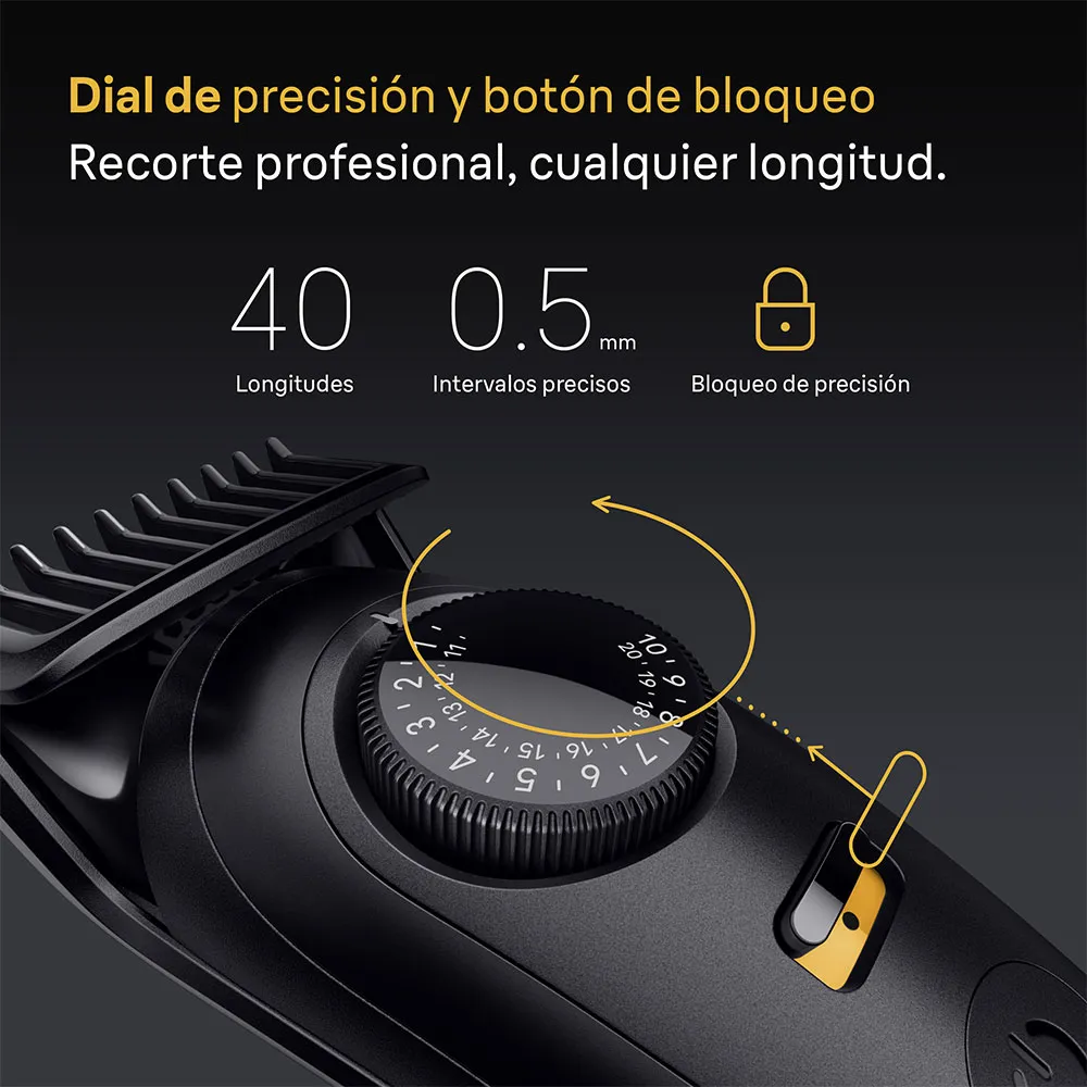 Niente più errori: mantieni il pieno controllo ad ogni rifinitura grazie a PrecisionLock e PrecisionWheel con 40 impostazioni di lunghezza a intervalli di 0.5 mm.