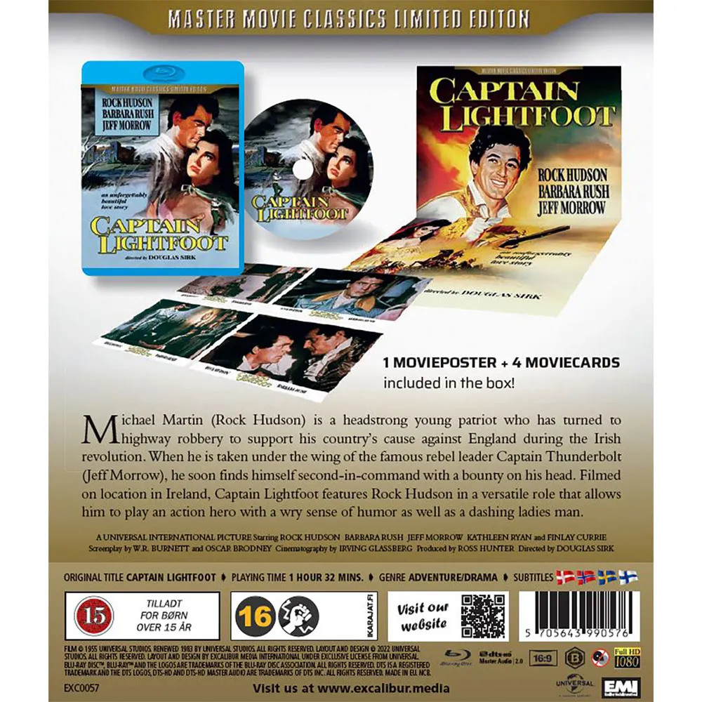 Diretto dal magistrale Douglas Sirk, noto per i suoi melodrammi lussureggianti, Captain Lightfoot si distingue come un´avventura d´azione visivamente sbalorditiva. Una delle più grandi caratteristiche del film è la sua straordinaria fotografia in esterni. Girato interamente nei pittoreschi paesaggi dell´Irlanda, il film mette in mostra le dolci colline verdi del paese, i castelli storici e le coste frastagliate in un glorioso e vibrante Technicolor. La presentazione widescreen CinemaScope esalta ulteriormente la portata epica, immergendoti completamente nel mondo di questi coraggiosi ribelli. La storia è perfettamente completata da un emozionante romanzo, poiché Martin si innamora della vivace e bellissima figlia di Captain Thunderbolt, Aga (l´adorabile Barbara Rush), aggiungendo uno strato di cuore e passione al conflitto ad alto rischio.