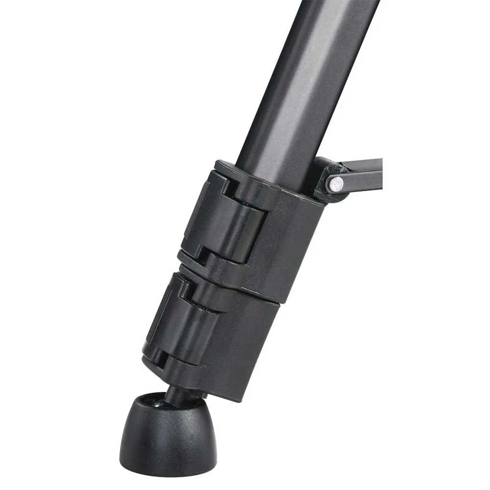 Piedini flessibili in gomma che si adattano a superfici irregolari, offrendo una presa salda e stabile. Gancio per contrappeso per una maggiore sicurezza in condizioni di vento o su terreni accidentati. Livella a bolla integrata sulla testa per garantire la posizione ideale e prevenire inclinazioni indesiderate.