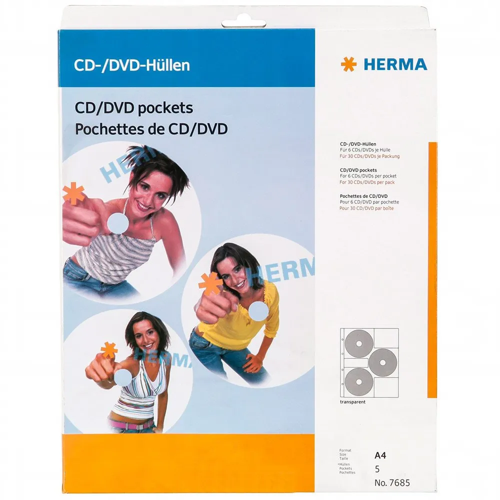 Tasche HERMA per CD / DVD in pellicola trasparente, antistrappo e priva di plastificanti. Protezione sicura di CD / DVD Archiviazione gestibile e salvaspazio. 5 tasche per un massimo di 30 CD / DVD.