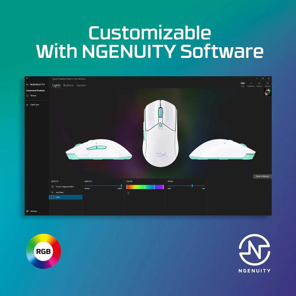 Entra nel mondo dei giochi ad alte prestazioni. Entra nel mondo dei dispositivi di gioco di alta qualità con HyperX Pulsefire Haste 2 Core Wireless. Questa alternativa economica al mouse Pulsefire Haste 2 originale presenta una familiare forma simmetrica e una struttura leggera con un peso operativo di soli 70 grammi[3]. Utilizzando una singola batteria AAA, questo mouse ti consente di giocare su una connessione a 2,4 GHz per circa 100 ore[1]. Puoi anche passare alla modalità Bluetooth per prolungare la durata della batteria, con una frequenza di polling ridotta ideale per i giochi occasionali. All´interno troverai il sensore HyperX Custom Core, che può fornire fino a 12.000 DPI con una frequenza di polling massima di 1.000 Hz per azioni rapide e movimenti fluidi. Allo stesso modo, apprezzerai gli switch TTC Gold tattili e resistenti nei tuoi giochi, con una durata utile fino a 20 milioni di clic[4]. Le pattini a bassa frizione rendono i tuoi movimenti più facili scivolando dolcemente sui tappetini in tessuto. Inoltre, potrai sfruttare appieno il potenziale del mouse Pulsefire Haste 2 Core Wireless utilizzando il software HyperX NGENUITY[5]. Riassegna rapidamente funzioni e macro essenziali all´interfaccia a 6 pulsanti, imposta con precisione i livelli DPI per un tracciamento preciso, regola la frequenza di polling per ottimizzare le prestazioni e persino personalizza l´illuminazione RGB e gli effetti luminosi per adattarli al tuo stile unico. Il mouse Pulsefire Haste 2 Core Wireless è inoltre certificato per NVIDIA Reflex[6] per ottimizzare la latenza di sistema end-to-end con monitor compatibili.