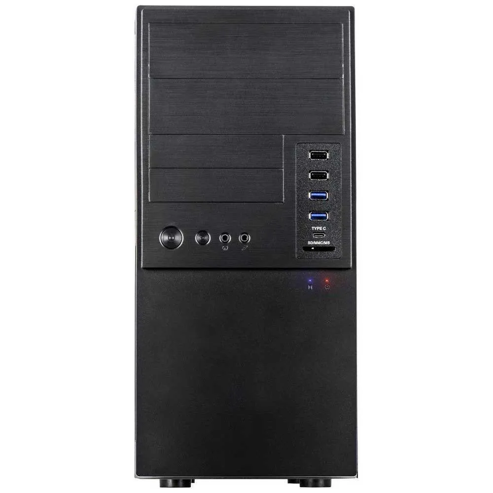 L'It 6865 ha un aspetto gradevole ed è quindi la base perfetta per un PC da ufficio. Le superfici spazzolate offrono varietà e sottolineano il design accattivante del pannello frontale. Il punto forte dell'It 6865 è il gran numero di connettori frontali. Due Usb 2.0 e due Usb 3.0, oltre a una connessione USB di tipo C, offrono la migliore trasmissione dei dati, un lettore di schede Sdxc/Mmc/Ms completa l'offerta.