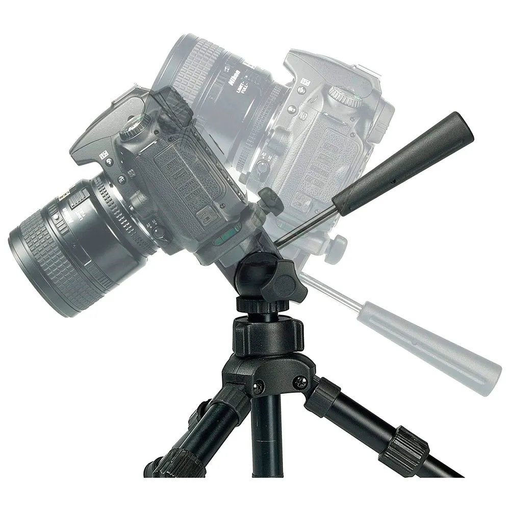 Con gambe telescopiche a tre sezioni e colonna centrale allungabile. Testa panoramica a 3 vie con piattaforma della fotocamera inclinabile per scatti di ritratto e paesaggio. Livella incorporata per un allineamento esatto. Colonna centrale con ventosa per una messa a terra aggiuntiva su superfici piane e piane nella posizione più bassa.