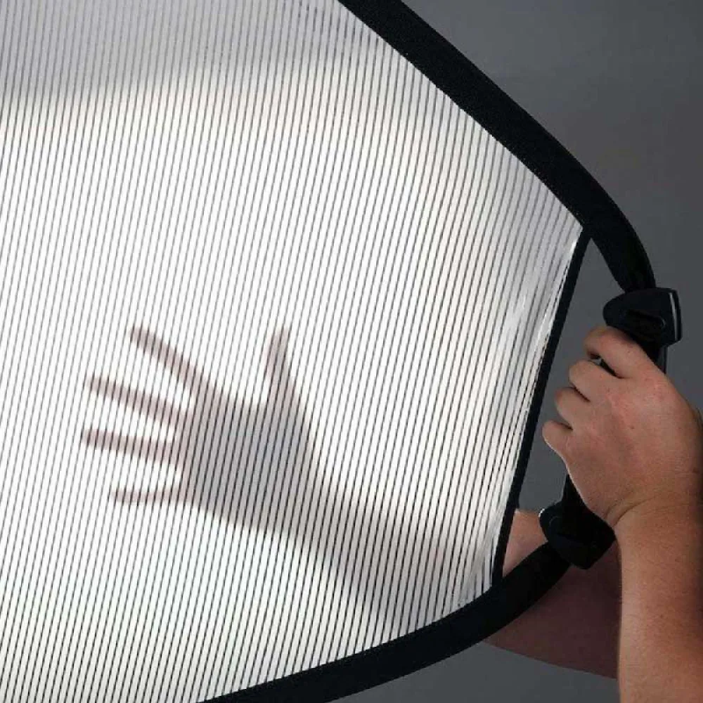 Il riflettore di luce TriGrip Deflector presenta anche l'esclusiva impugnatura stampata TriGrip per un posizionamento accurato del riflettore con una sola mano.