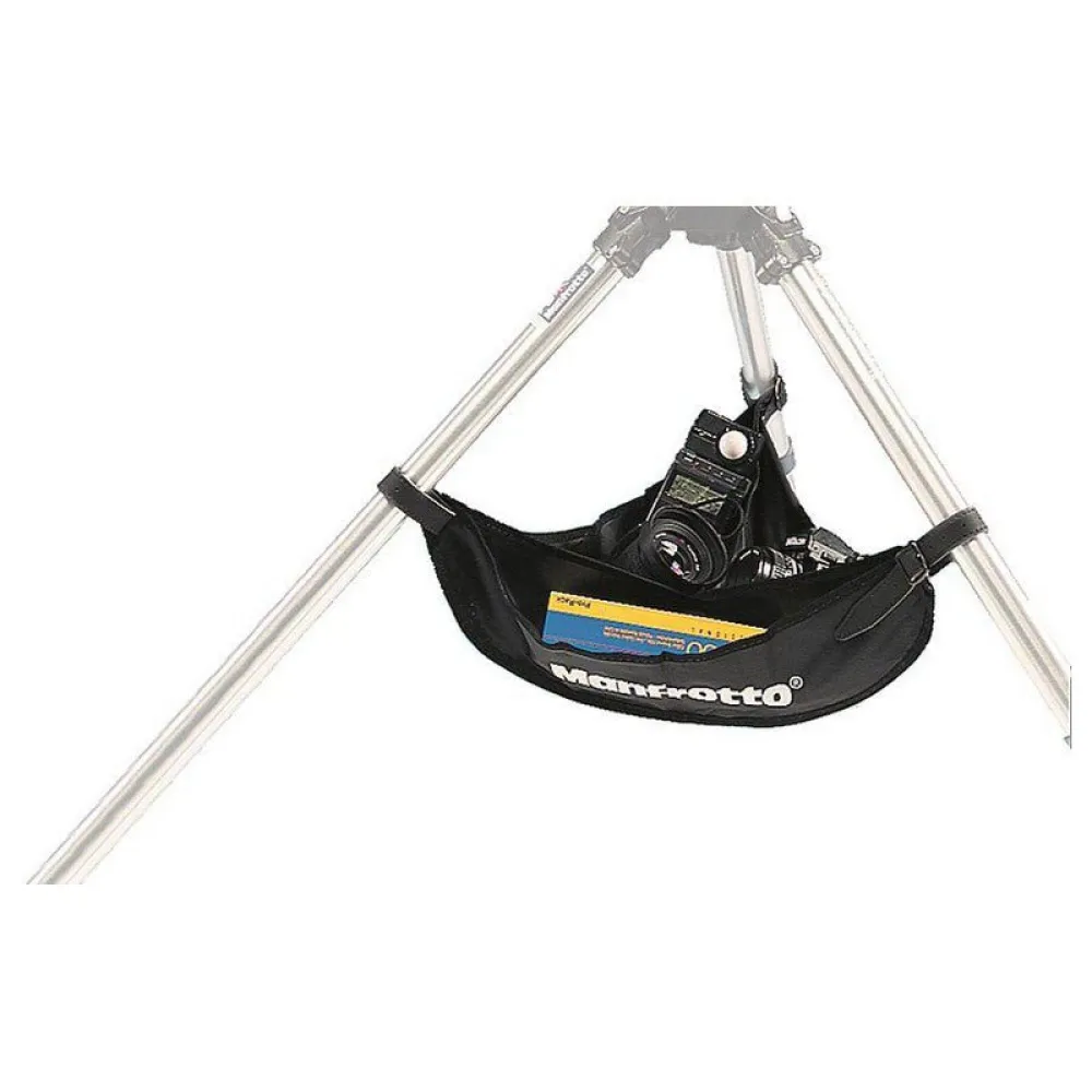 Tre scomparti pendono sotto la colonna sostenuta da cinghie sopra i blocchi delle gambe. Si adatta alla maggior parte dei treppiedi Manfrotto.