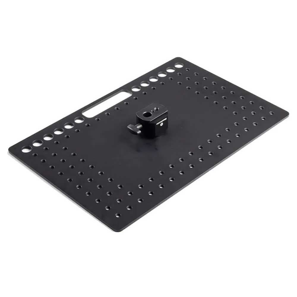 Il ripiano per laptop Tethergear è realizzato in alluminio leggero spesso 4,8 mm (0,18") e misura 46 cm x 31 cm (16,14" x 12,20"), fornisce all'utente una piattaforma ultra stabile progettata per montare i laptop in modo sicuro sopra Attrezzatura di presa e supporto come supporti per luci, treppiedi per fotocamere e bracci di supporto. Prendendo spunto dagli accessori in stile piatto da formaggio dell'industria del cinema e delle impugnature, è dotato di una serie di fori di montaggio filettati da 3/8" in posizioni chiave, che consentono di fissare in modo sicuro computer portatili di qualsiasi dimensione utilizzando l'hardware di montaggio antiscivolo incluso. La configurazione del foro incorpora anche un'utile funzione di gestione dei cavi per impedire la disconnessione dei cavi dal dispositivo nel caso in cui l'utente li tiri accidentalmente durante le riprese. Molteplici opzioni di montaggio tramite l'adattatore incluso montato sotto il piatto dotato di: presa femmina da 16 mm (5/8"), fori filettati da 1/4'''' e 3/8" e compatibilità Arca-Swiss, che consentono all'utente di sparare senza restrizioni E lavora con la loro foto preferita o il supporto per l'illuminazione.Manfrotto Tethergear è una collezione di accessori per riprese tethered progettati e creati per i creatori di contenuti professionali, accessori essenziali necessari per allestire una workstation tethered o un villaggio video utilizzando monitor, laptop o tablet.