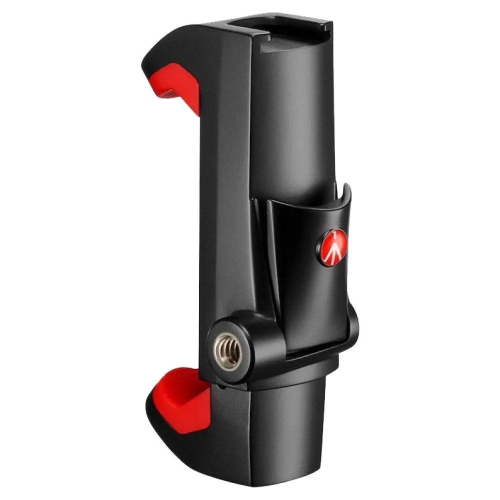 Il morsetto PIXI Manfrotto è progettato per fissare in modo sicuro qualsiasi smartphone da 60 mm a 104 mm di larghezza a qualsiasi tipo di supporto, come il mini treppiede PIXI. Il morsetto è dotato di due attacchi da ¼ sul lato e sul fondo, consentendo la modalità verticale insieme alla normale modalità orizzontale. Ha anche un pratico supporto per scarpe sulla parte superiore per il fissaggio di luci a LED, microfoni o altri accessori. La sua sicura leva di blocco con blocco a Y garantisce la sicurezza del tuo telefono e semplifica l'acquisizione dei migliori contenuti.