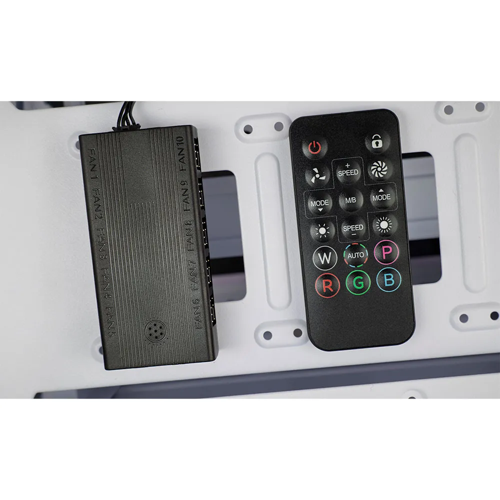 È incluso un telecomando multifunzione, che consente di regolare istantaneamente gli effetti di illuminazione e le velocità delle ventole tra 600 e 1600 RPM.