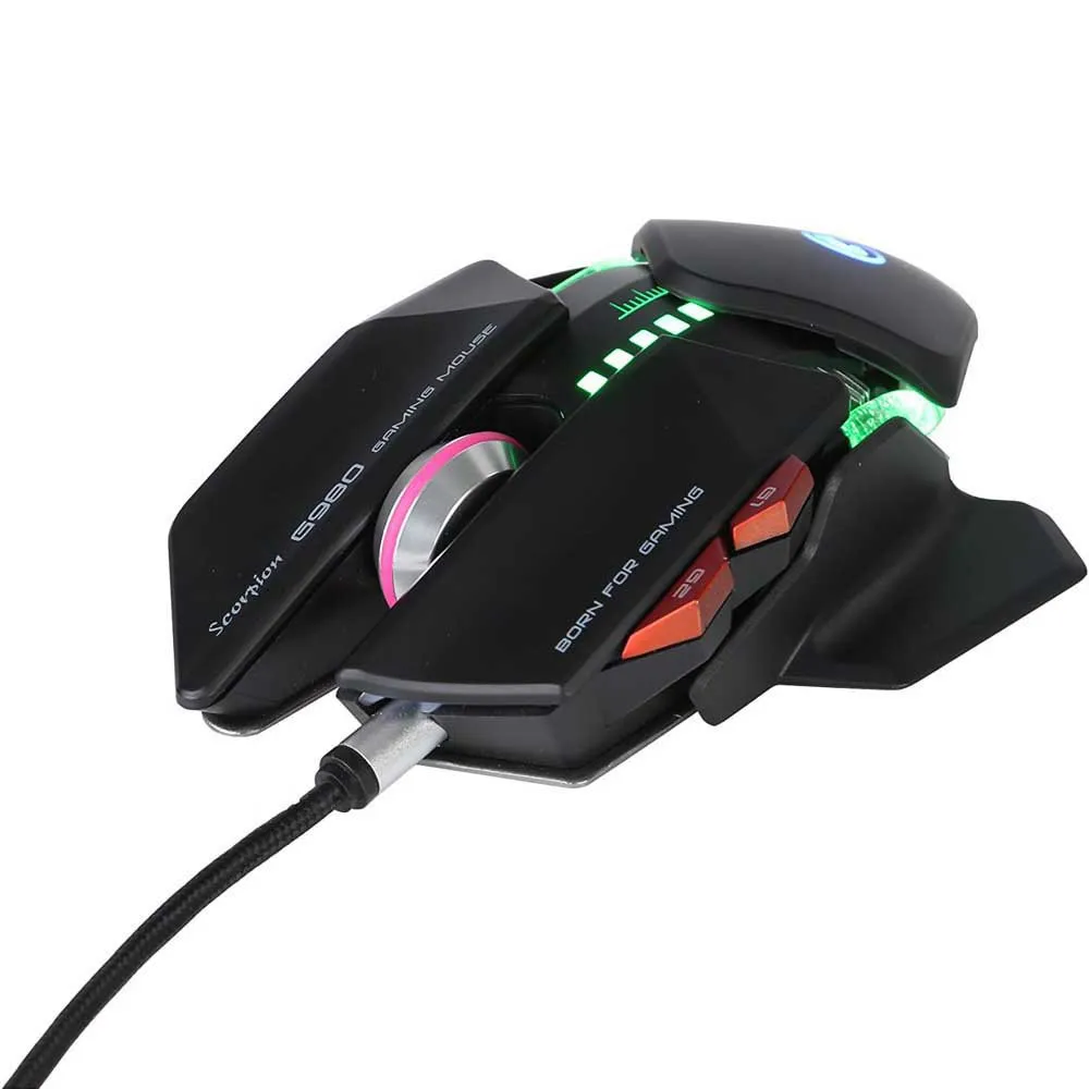 Il mouse da gaming SCORPION MARVO G980 in nero è il compagno di gioco definitivo per i giocatori accaniti. Con un design elegante ed ergonomico, questo mouse offre una presa comoda e un controllo preciso durante le intense sessioni di gioco. Il mouse è dotato di illuminazione RGB personalizzabile che può essere regolata per adattarsi alla tua configurazione di gioco. Con un sensore di alta qualità e impostazioni DPI regolabili, lo SCORPION MARVO G980 garantisce un tracciamento fluido e preciso sia per il gioco veloce che per quello di precisione. Inoltre, il mouse è dotato di pulsanti programmabili che possono essere personalizzati in base alle tue preferenze di gioco. Migliora la tua esperienza di gioco con il mouse da gaming SCORPION MARVO G980