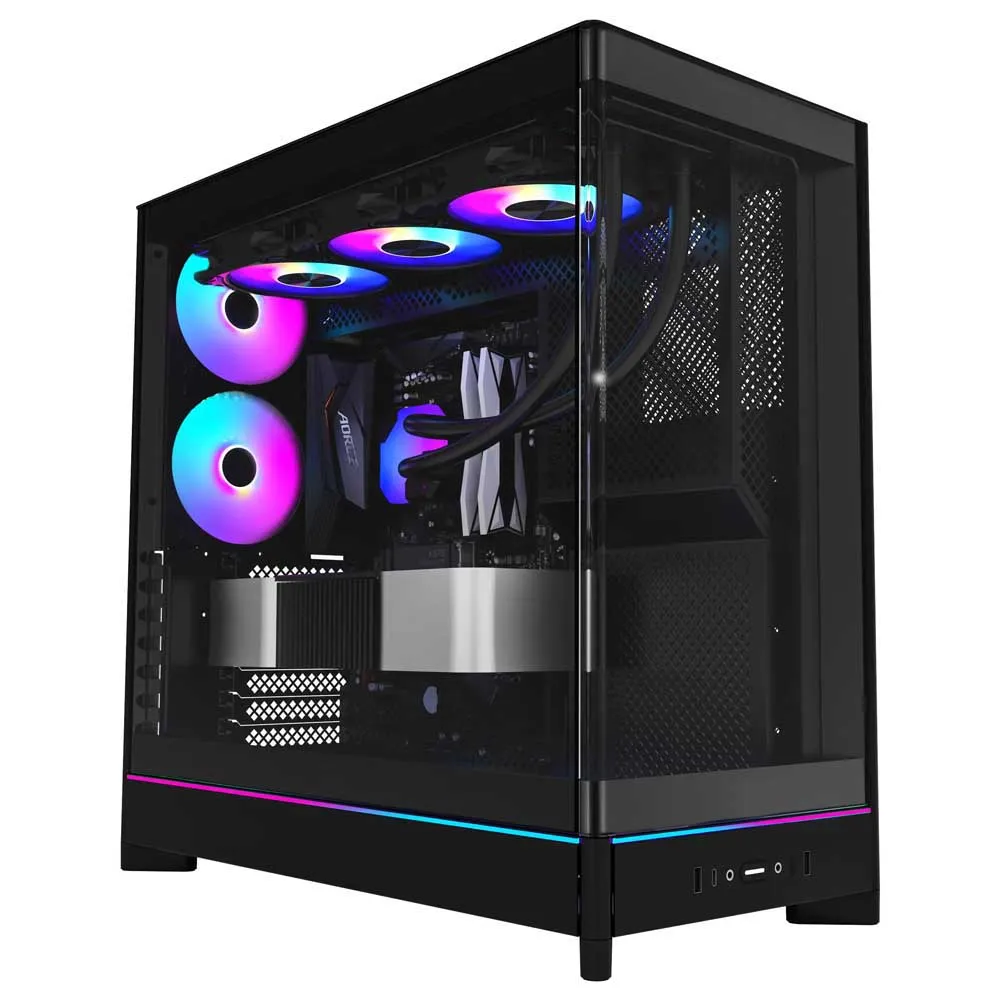 MONTECH HS02 PRO, Case per PC Mid-Tower ATX, PC da Gaming, Elevato Flusso d´Aria, Design Reversibile, Pannello Frontale in Vetro Temperato Curvo Robusto, 5 Ventole ARGB PWM Preinstallate, Design Affondante, Pannelli Senza Attrezzi, Nero, US uu.