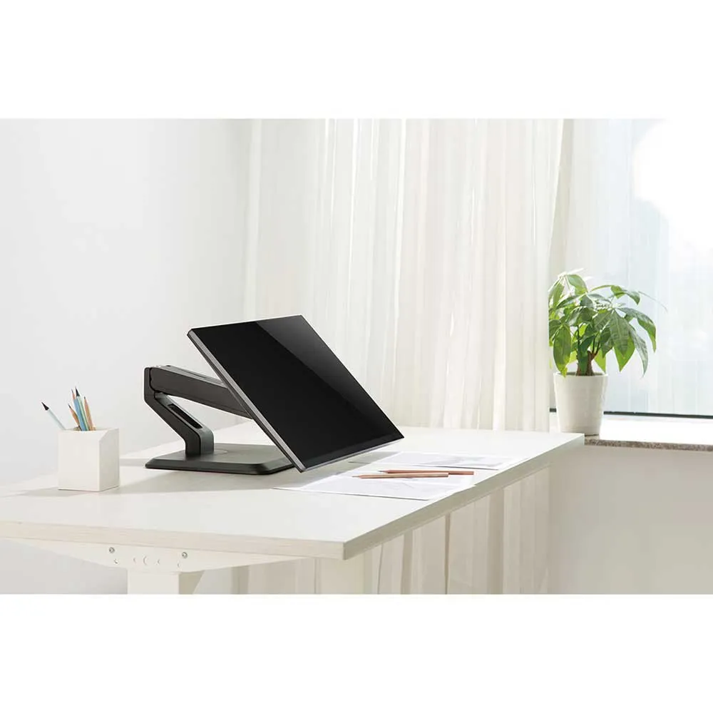 Il supporto da tavolo NewStar, modello FPMA D860BLACK è un supporto da tavolo inclinabile, girevole e girevole per schermi piatti fino a 32 ". Questo supporto è un'ottima scelta per il posizionamento salvaspazio sulle scrivanie utilizzando un supporto da scrivania.La versatile tecnologia di inclinazione (20 °), rotazione (360 °) e rotazione (20 °) di NewStar consente al supporto di cambiare completamente qualsiasi angolo di visione beneficiare delle capacità dello schermo piatto. La montatura è regolabile manualmente in altezza da 26 a 45 centimetri. Profondità 5 centimetri. NewStar FPMA D860BLACK ha un punto di rotazione ed è adatto per schermi fino a 32 '' (81 cm). La capacità di peso di questo prodotto è di 8 kg per schermo. Il supporto da scrivania è adatto per schermi che soddisfano il modello di foro VESA 75x75 o 100x100 mm. Diversi modelli di fori possono essere coperti utilizzando le piastre adattatrici NewStar VESA.