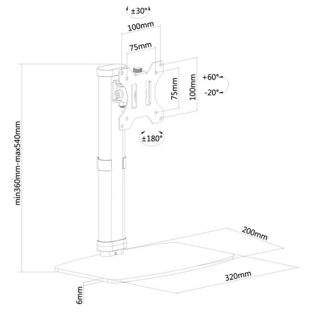 Il supporto da tavolo NewStar, modello FPMA D890BLACK è un supporto da tavolo inclinabile, girevole e girevole per schermi piatti fino a 30 ”. Questo supporto è un'ottima scelta per il posizionamento salvaspazio sulle scrivanie utilizzando un supporto da scrivania. La versatile tecnologia di inclinazione (80 °), rotazione (360 °) e rotazione (60 °) di NewStar consente al supporto di cambiare qualsiasi angolo di visione per beneficiare appieno delle capacità dello schermo piatto. La montatura è regolabile manualmente in altezza da 36 a 54 centimetri. Profondità 6 centimetri. NewStar FPMA D890BLACK ha due punti di rotazione ed è adatto per schermi fino a 30 '' (76 cm). La capacità di peso di questo prodotto è di 6 kg per schermo. Il supporto da scrivania è adatto per schermi che soddisfano lo schema dei fori VESA 75x75 o 100x100mm. Diversi modelli di fori possono essere coperti utilizzando le piastre adattatrici NewStar VESA. Utilizzando un supporto ergonomico è possibile evitare disturbi al collo e alla schiena. Ideale per l'utilizzo in uffici e banconi o in una zona reception.