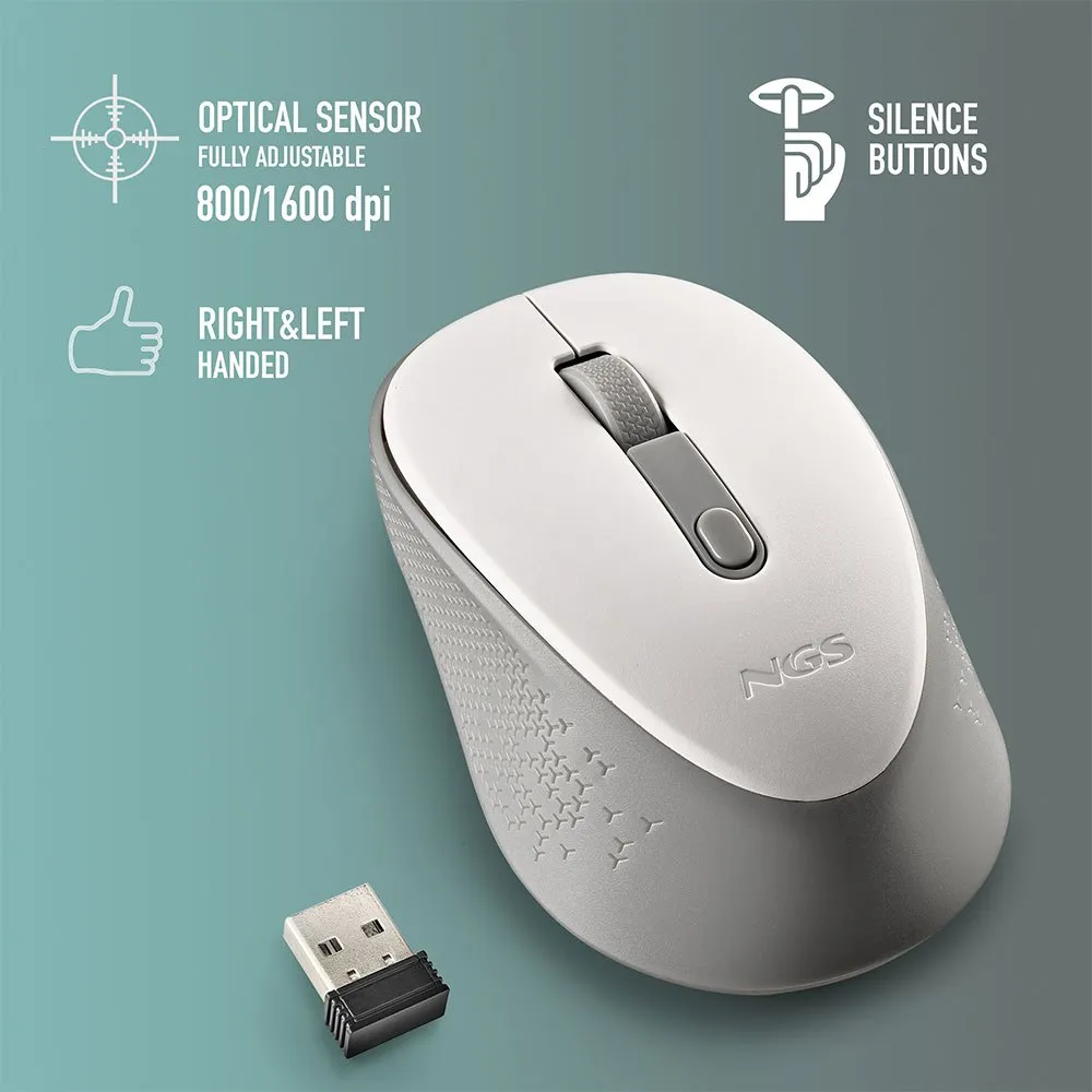 NGS Dew mouse wireless con pulsanti silenziosi appositamente per laptop e computer desktop.