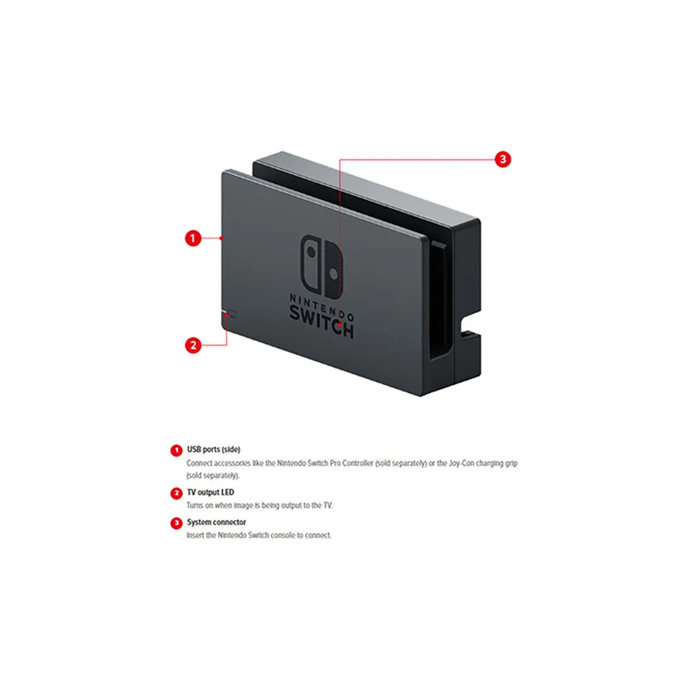 Console - Accessori Nintendo. Espandi senza interruzioni la tua esperienza di gioco con il Dock Set ufficiale NINTENDO Switch. Perfetto per un secondo televisore o come ricambio, questo kit all-in-one ti permette di passare senza sforzo alla modalità grande schermo. Include la base, l´alimentatore CA e il cavo HDMI per una facile configurazione. Mentre è inserita nella base, ricarica la tua console e i Joy-Con, assicurandoti di essere sempre pronto a giocare. Tre porte USB ti consentono di collegare accessori come un Pro Controller o un adattatore LAN per un´esperienza migliorata. Goditi la qualità, la compatibilità e le prestazioni garantite Nintendo per un´esperienza di gioco HD coinvolgente
