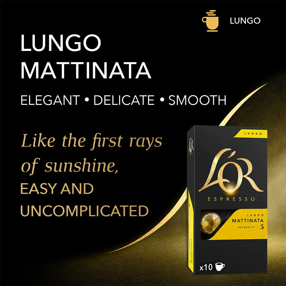 Scopri l´arte del lungo perfetto. Il Lungo Mattinata è un caffè dai deliziosi contrasti, che offre un carattere piacevolmente vivace senza sopraffare il palato. Presenta un profilo aromatico aggraziato con delicate note fruttate e una sottile acidità brillante che danza sulla lingua. Il tutto è coronato da uno strato di crema dorata fine e scintillante, una testimonianza della qualità del caffè e dell´estrazione perfetta. L´esperienza è di pura eleganza, offrendo una tazza sofisticata e aromatica, ideale per il tuo primo caffè della giornata o per una rilassante pausa pomeridiana. I chicchi accuratamente selezionati vengono tostati alla perfezione per sbloccare questo specifico e coinvolgente profilo aromatico, assicurando che ogni sorso sia memorabile come l´ultimo.