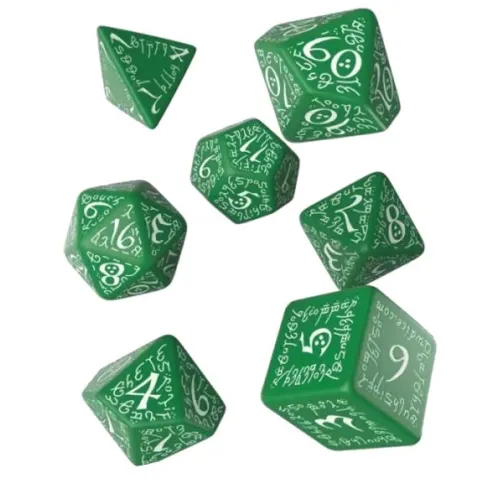 Ogni dado di questo set è meticolosamente realizzato con bordi affilati e intricate incisioni di ispirazione elfica, a dimostrazione dell´impareggiabile maestria di Q WORKSHOP. La resina verde smeraldo traslucida brilla di una luce ultraterrena, evocando la bellezza mistica delle antiche foreste e delle radure nascoste.