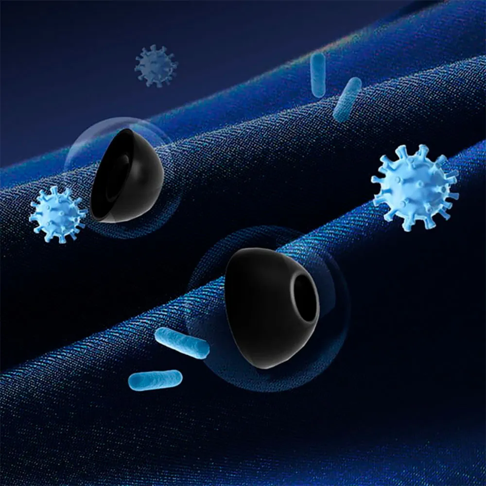 D´altra parte, il loro design è comodo da indossare per lunghi periodi di ascolto, inclusi i gommini antibatterici che proteggono la salute della pelle e la resistenza IPX5 contro polvere e schizzi.
