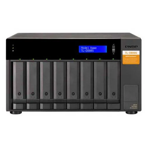 Il TL-D800S dispone di otto alloggiamenti per unità SATA da 3.5 pollici a 6 Gb/s ed è dotato di una scheda QXP PCIe per il collegamento dell´unità tramite cavo SFF-8088 (o SFF-8644).