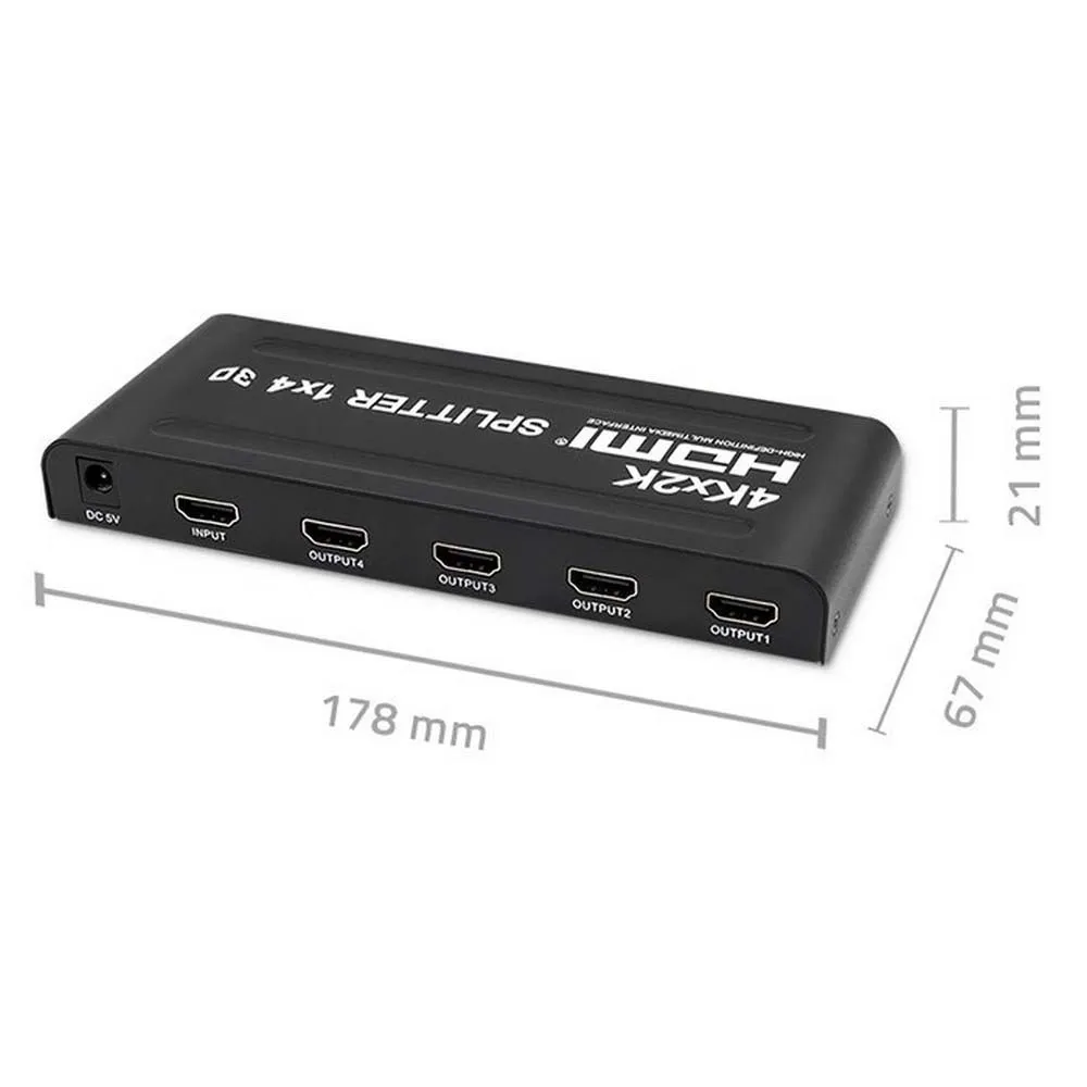 Sperimenta una risoluzione 4K impeccabile e video 3D vibranti e coinvolgenti. L´amplificatore e rigeneratore di segnale integrato potenzia il segnale HDMI, consentendo cavi più lunghi mantenendo un´immagine cristallina e un audio non compresso. Questo elimina problemi come l´interruzione del segnale o il rumore digitale, garantendo una connessione stabile e coerente a tutte e quattro le uscite. Il suo robusto alloggiamento in metallo non solo offre una durata superiore, ma aiuta anche nella dissipazione del calore, garantendo prestazioni ottimali durante l´uso prolungato. Con la sua semplice funzionalità plug-and-play, l´installazione è immediata e non richiede software complessi o installazione di driver.