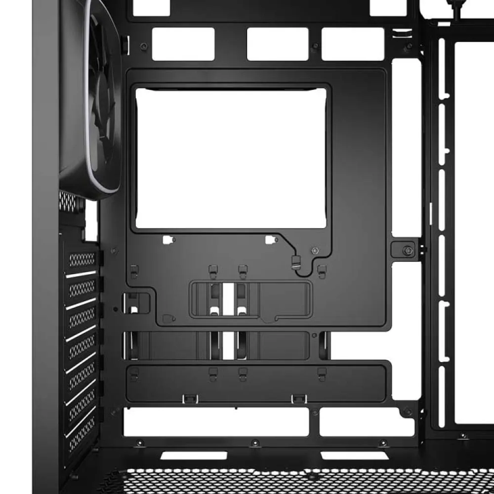 La gestione dei cavi è spesso un compito noioso, ma lo SHARKOON AK5G RGB semplifica il processo con il suo sistema di instradamento dei cavi ben progettato. Numerosi punti di ancoraggio per fascette e ritagli posizionati strategicamente semplificano l´instradamento e l´occultamento dei cavi, creando un interno pulito e organizzato. Questo non solo migliora l´estetica della tua build, ma ottimizza anche il flusso d´aria riducendo l´ingombro.