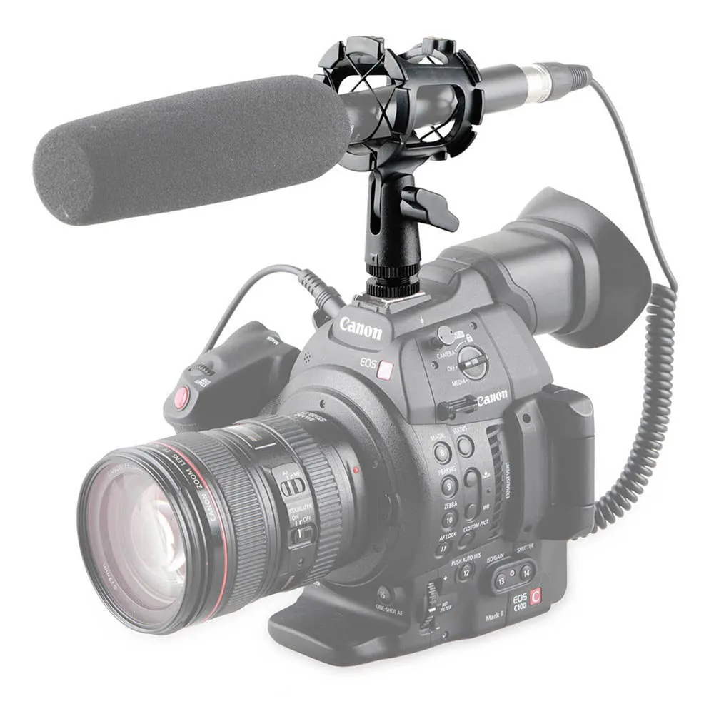 Il supporto antiurto per microfono SmallRig per scarpe da fotocamera e boompole 1859 è dotato di una sospensione a quattro punti per ospitare microfoni a fucile e altri microfoni cilindrici che misurano 0,59 1,57 pollici (15 40 mm) di diametro. Il supporto antiurto è facilmente angolabile con la sua manopola di regolazione. C'è una scarpa incorporata per il montaggio della fotocamera e una connessione filettata da 3/8'' 16 alla base monta il supporto antiurto su aste telescopiche e impugnature universali.