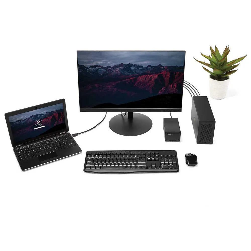 Questo chassis di espansione PCIe Thunderbolt™3 ti consente di aggiungere una scheda PCI Express al tuo laptop o computer desktop, tramite una connessione Thunderbolt 3 esterna. Lo chassis dispone anche di un'uscita video DisplayPort, quindi puoi collegare un monitor aggiuntivo al tuo laptop e supporta il collegamento a margherita Thunderbolt 3, in modo da poter espandere ulteriormente la tua workstation.