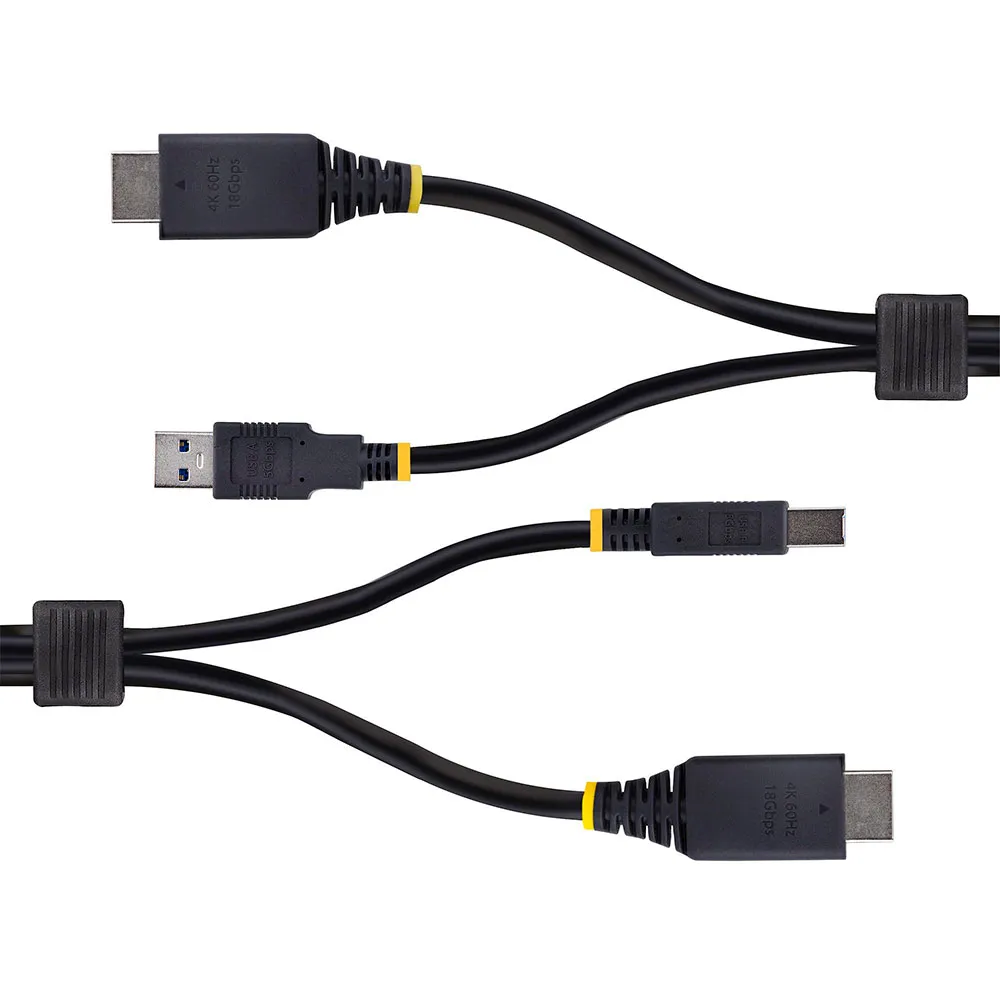 Combina HDMI 4K 60Hz e una connessione USB 5Gbps in un unico cavo per collegare un computer a uno switch KVM. Il cavo KVM fornisce una connessione affidabile tra un computer e uno switch KVM HDMI con supporto USB 5Gbps. Gestisci i cavi con facilità. Semplifica la gestione dei cavi combinando più connessioni in un unico fascio. Questo riduce al minimo il numero di cavi individuali che devono essere gestiti, rendendo l´installazione più rapida ed efficiente. Sono perfetti per ambienti in cui i KVM sono essenziali, come data center, sale server, edge networking e configurazioni di gestione remota, contribuendo a ridurre l´ingombro dei cavi e a mantenere uno spazio di lavoro organizzato. Funziona con qualsiasi switch KVM. Questo cavo KVM funziona con qualsiasi sistema operativo, inclusi Windows, macOS, ChromeOS e Linux. Supporta anche tutte le principali piattaforme hardware, come Intel, AMD e Apple Silicon. Il cavo combo KVM è conforme a HDMI 2.0, supportando risoluzioni fino a 4K a 60Hz, HDR10 e audio HDMI per un´esperienza audio/video di alta qualità. Il connettore USB 3.0 Type-A a Type-B fornisce velocità di trasferimento dati elevate fino a 5Gbps. Il vantaggio: cavo KVM HDMI e USB 5Gbps da 3 m (10 piedi), cavo combo HDMI 2.0 e USB 4K 60Hz per switch KVM. Lunghezza cavo: 3.1 m, Tipo porta tastiera: USB, Tipo porta mouse: USB. Certificati di conformità: RoHS. Quantità per confezione: 1 pz, Peso: 450 g, Larghezza confezione: 395 mm. Larghezza cassa master (esterna): 400 mm, Lunghezza cassa master (esterna): 300 mm, Altezza cassa master (esterna): 300 mm. CAVO COMBO KVM: collega un computer a uno switch KVM HDMI dotato di USB 5Gbps.