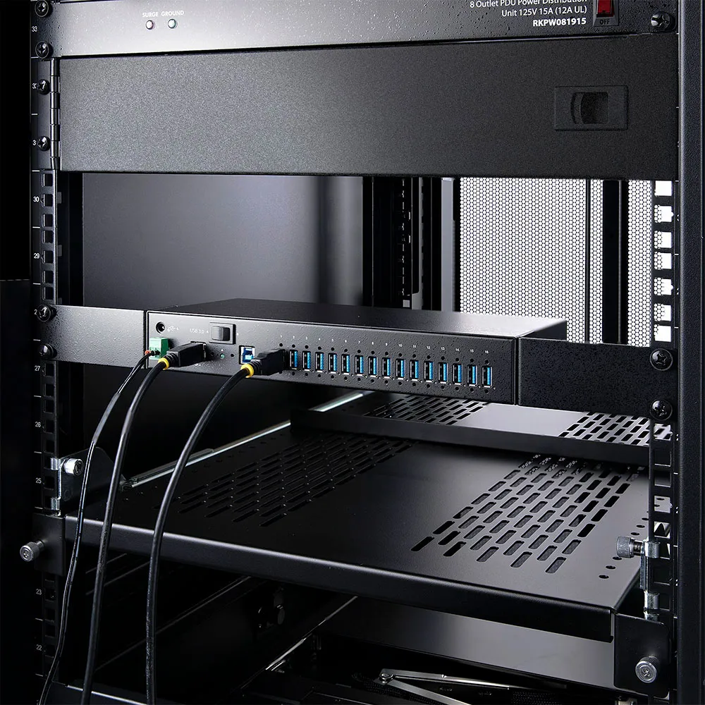/Connectivity-Tools Il vantaggio: Hub USB industriale a 16 porte da 5 Gbps con adattatore di alimentazione, contenitore in metallo, montabile, protezione ESD, alimentazione tramite morsettiera, ricarica USB, switch dual-host - TAA. Interfaccia host: 2 x USB 3.2 Gen 1 (3.1 Gen 1) Tipo-B, Interfacce hub: USB 3.2 Gen 1 (3.1 Gen 1) Tipo-A. Velocità di trasferimento dati: 5000 Mbit/s, Colore del prodotto: Nero, Materiale dell´alloggiamento: Acciaio. Consumo energetico (max): 158.4 W, Tensione di ingresso: 100 - 240 V, Corrente di ingresso: 3.5 A. Peso: 1.1 kg. Larghezza della confezione: 273 mm, Profondità della confezione: 368 mm, Altezza della confezione: 98 mm. HUB USB INDUSTRIALE A 16 PORTE: Hub USB 3.2 Gen 1 con alloggiamento in metallo per una maggiore durata in ambienti difficili e protezione ESD di Livello 4 (15kV aria/8kV contatto)
