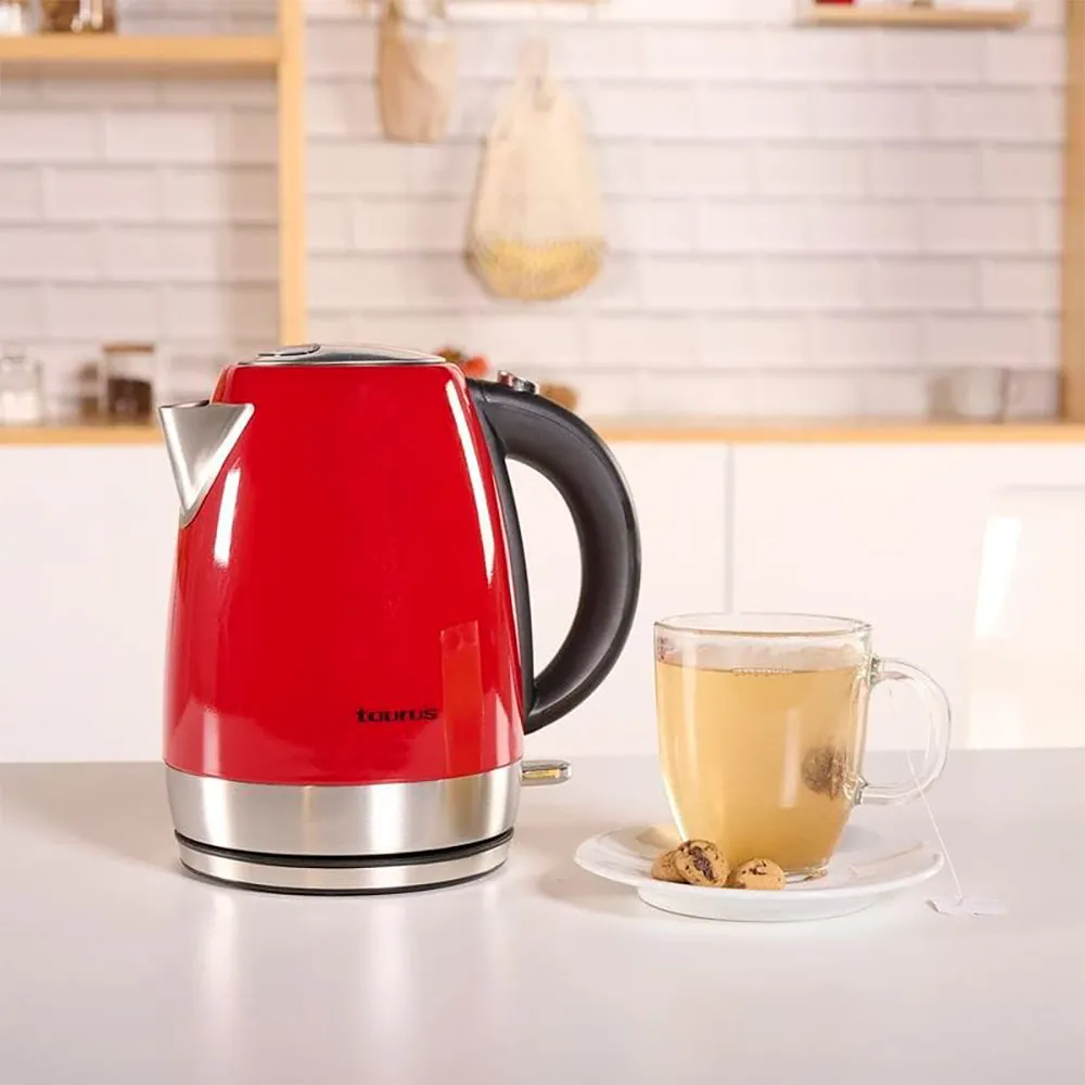 Il bollitore elettrico Taurus Vintage Red riscalda rapidamente 1.7 litri di liquido grazie alla sua potenza di 2200 W, per ottenere un comodo infuso o tè in breve tempo.