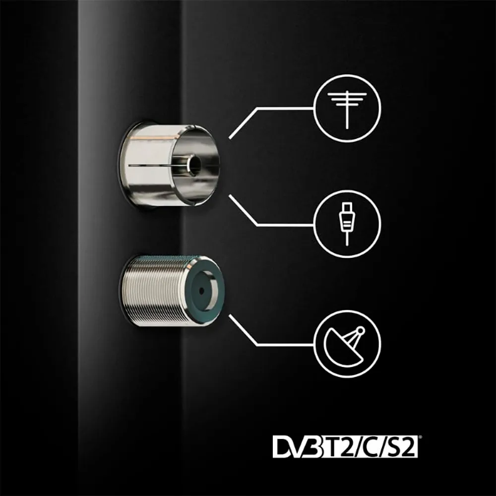 Il supporto HDR10 migliora il contrasto nei contenuti compatibili e il triplo sintonizzatore DVB-T/T2/C/S2 consente di ricevere segnali da antenna, cavo o satellite senza decoder esterni.
