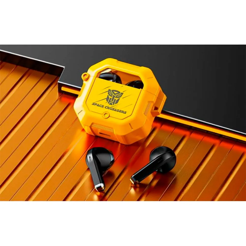 TWS Transformers TF-T12, cuffie con suono Hi-Fi e microfono con cancellazione del rumore ANC, colore giallo.