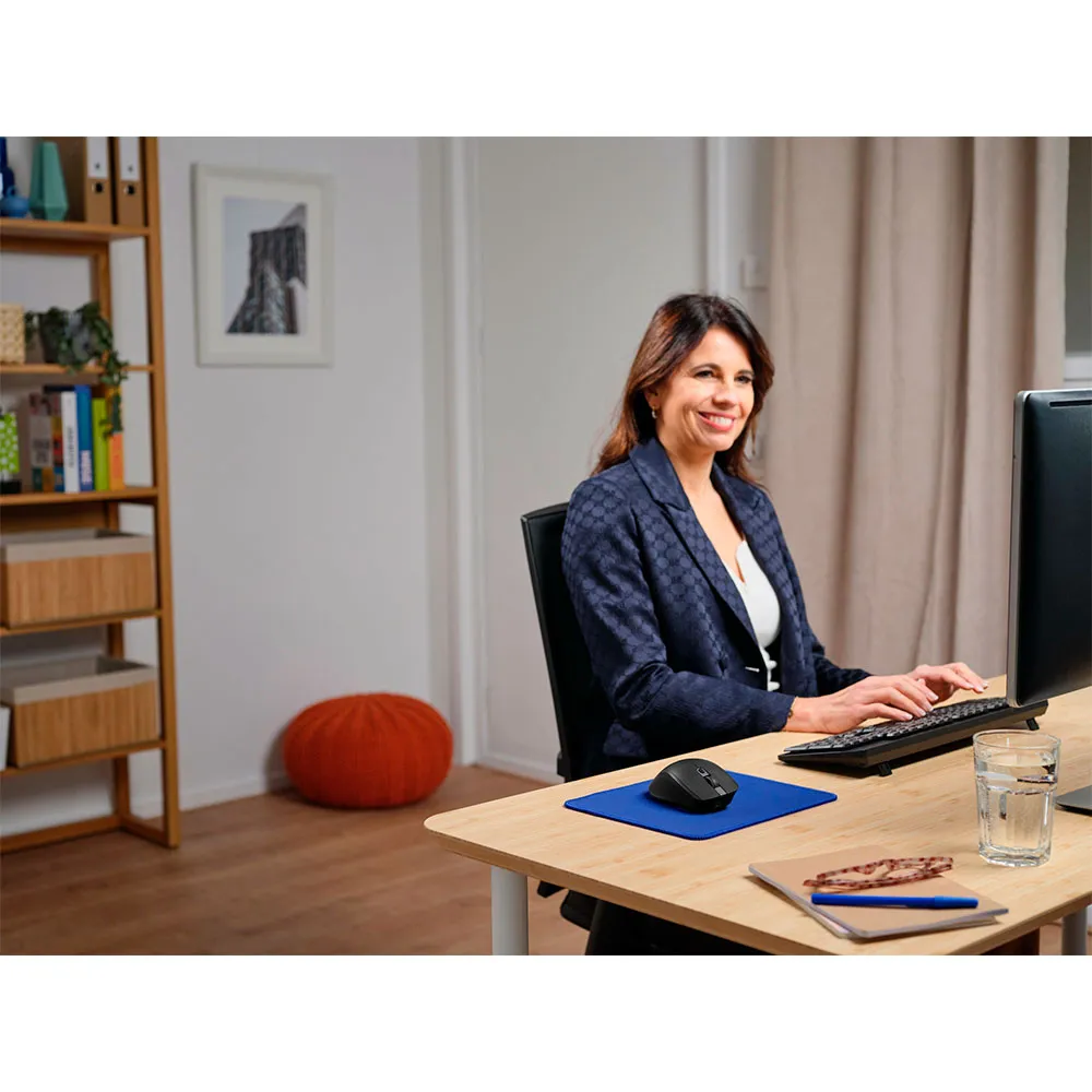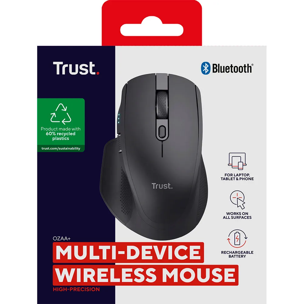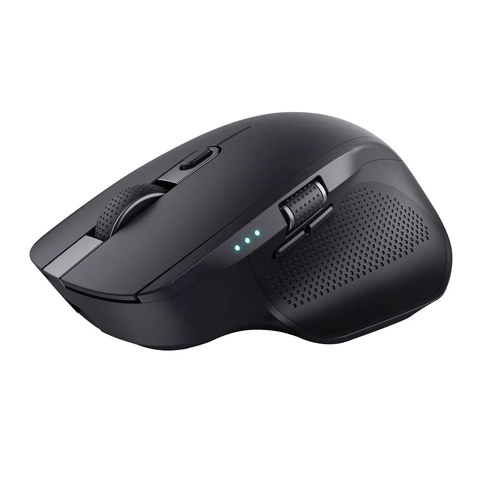 Mouse wireless ad alta precisione con connessione multi-dispositivo, pulsanti silenziosi e due rotelle di scorrimento. Hai bisogno di passare rapidamente da un dispositivo all´altro? Ozaa+ è stato progettato proprio per questo. Con la sua capacità di multi-connessione, connetti in modalità wireless fino a tre dispositivi contemporaneamente utilizzando un singolo ricevitore USB a 2.4 GHz o 2x Bluetooth. Tutto ciò che desideri in un mouse, Ozaa+ ce l´ha. Le sue grandi dimensioni e gli inserti in gomma offrono una presa perfetta e confortevole, la rotella di scorrimento laterale, i pulsanti silenziosi e il sensore ottico fino a 3200 DPI offrono un lavoro più confortevole, ed è persino realizzato con il 60% di plastica riciclata! per un lavoro più sostenibile. A nessuno piace un ufficio rumoroso, ecco perché abbiamo progettato Ozaa+ con pulsanti silenziosi, che ti consentono di lavorare in modo produttivo senza disturbare nessuno. Inoltre, il suo sensore di prima qualità significa che questo mouse può funzionare su qualsiasi superficie, quindi non dovrai trascinarlo sulla scrivania cercando di farlo funzionare. Pronto per essere il collega preferito di tutti. Sii sempre informato sulla durata della batteria del tuo mouse grazie ai suoi 3 LED che indicano chiaramente quanta batteria ti rimane. Quando si sta esaurendo, collegalo, ricaricalo e continua.